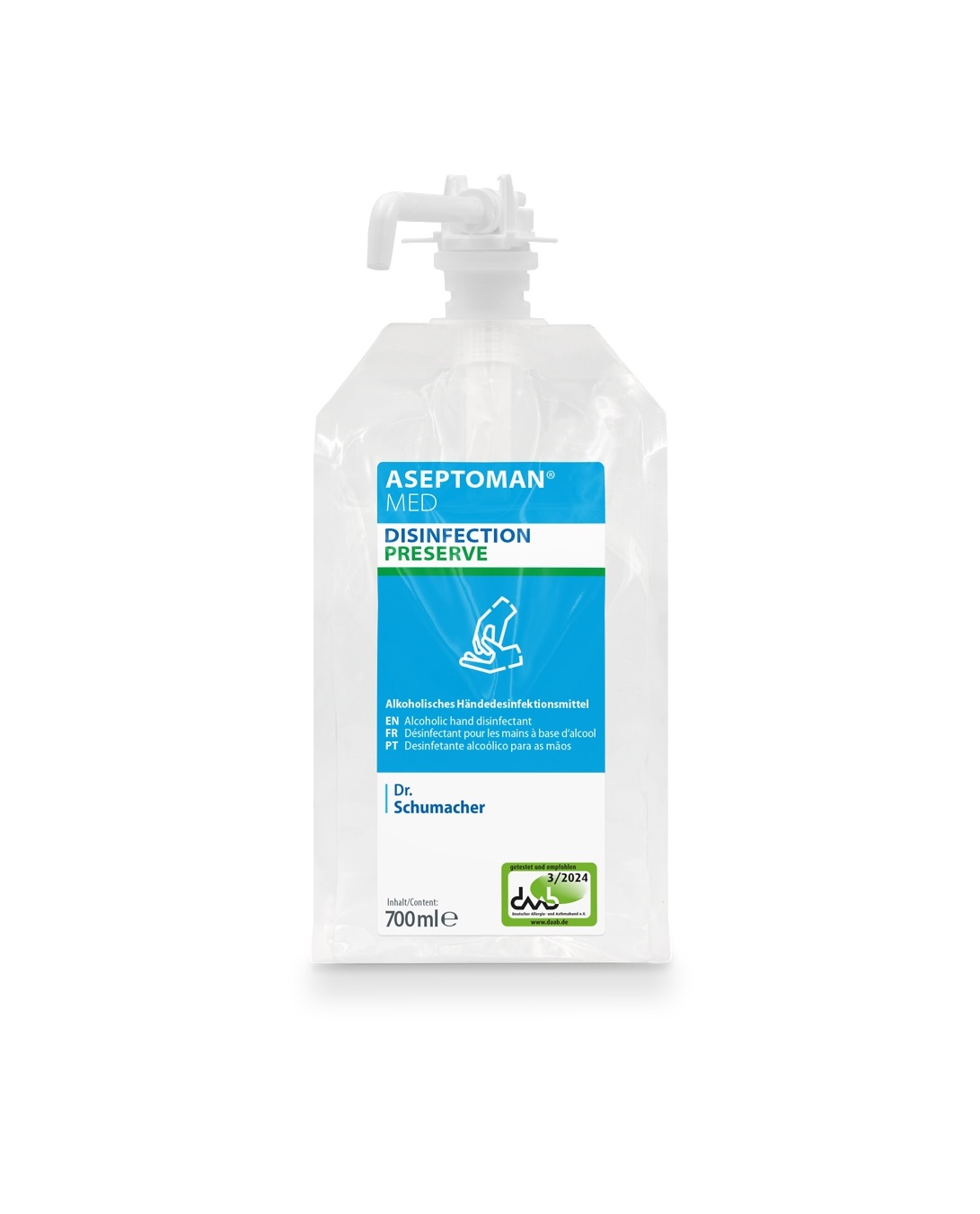 ASEPTOMAN MED erfüllt die Anforderungen an Händedesinfektionsmittel zur Verwendung bei Ausbrüchen von Noro-, Rota- und Adenoviren. Es ist parfümfrei und frei von kumulierenden Langzeitwirkstoffen, die sich auf der Haut anreichern und so zu Hautreizungen führen können.