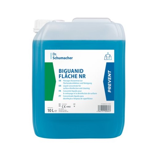 BIGUANID FLÄCHE NR ist ein Desinfektionsmittelkonzentrat für die Desinfektion und Reinigung von medizinischem Inventar, sowie Flächen aller Art und ist hervorragend geeignet zur Flächendesinfektion von abwaschbaren nicht porösen Flächen. BIGUANID FLÄCHE NR bietet ein breites Wirkungsspektrum. Es wirkt auf der Basis von quaternären Ammoniumverbindungen und enthält weder Aldehyde noch Phenole. BIGUANID FLÄCHE NR enthält einen Korrosionsschutz und bietet eine gute Materialverträglichkeit. Es ist besonders zu empfehlen für Bereiche, in denen neben der Erfüllung hoher hygienischer Anforderungen eine Geruchsbelästigung vermieden werden soll.