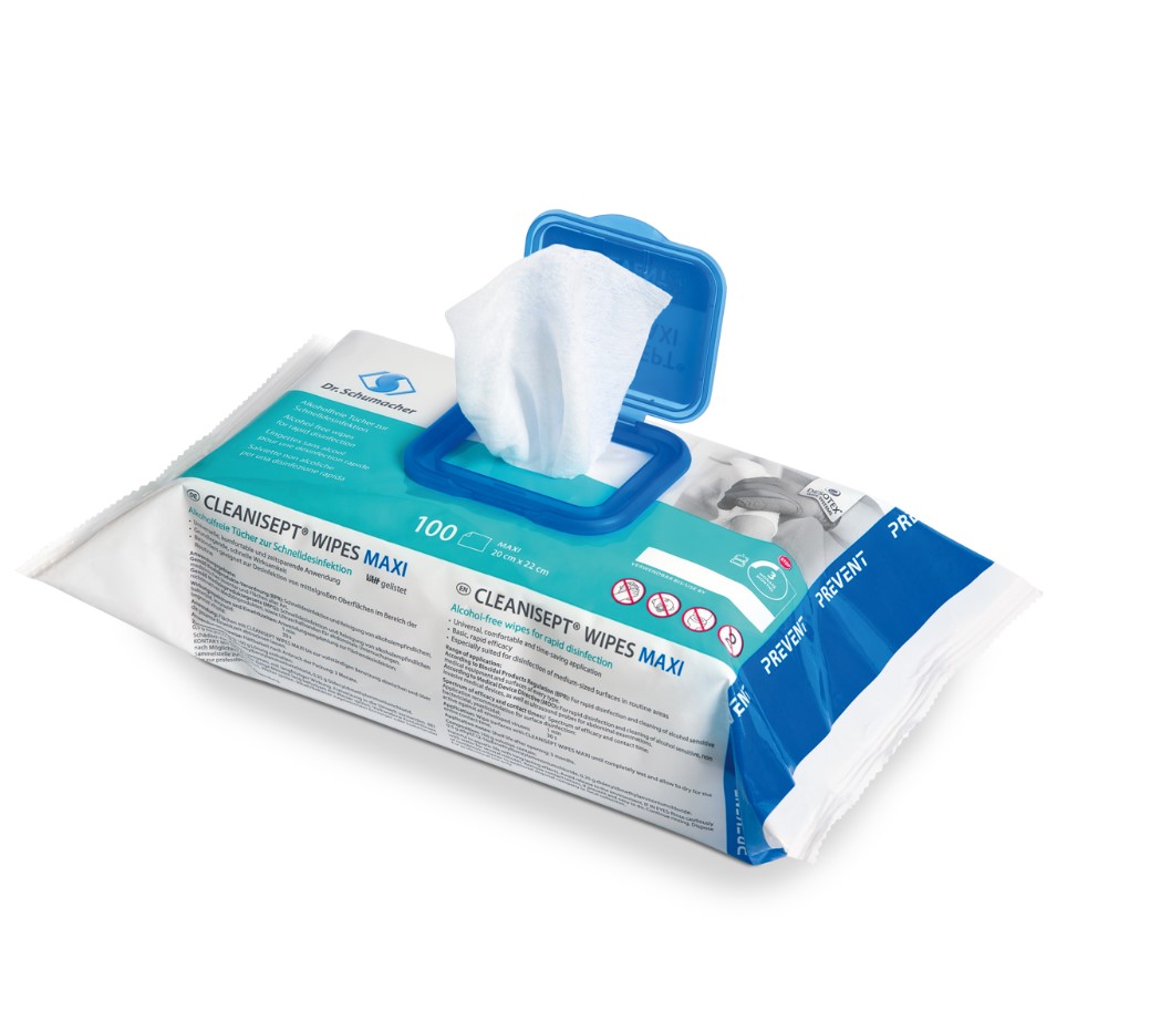 CLEANISEPT WIPES MAXI sind alkoholfreie, gebrauchsfertige Desinfektionstücher zur schnellen Desinfektion und Reinigung von Medizinprodukten und medizinischem Inventar sowie Flächen aller Art im Bereich der Routine. CLEANISEPT WIPES MAXI bieten bei der Desinfektion und Reinigung von mittelgroßen Flächen eine universelle und zeitsparende Anwendung. Sie sind alkoholfrei und enthalten weder Aldehyde noch Phenole. Die Tücher lassen sich einzeln aus der praktischen Packung mit wiederverschließbarem Deckel entnehmen.