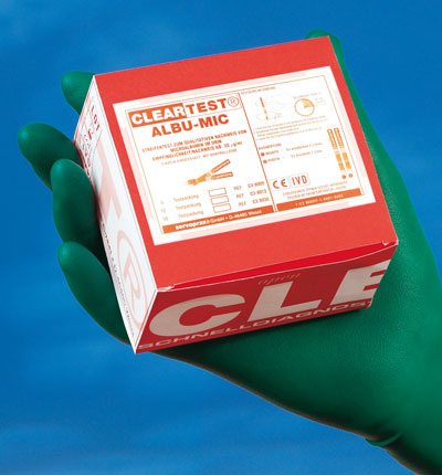 Immunchemischer Test zum qualitativen Nachweis bereits geringer Mengen Albumin im Urin