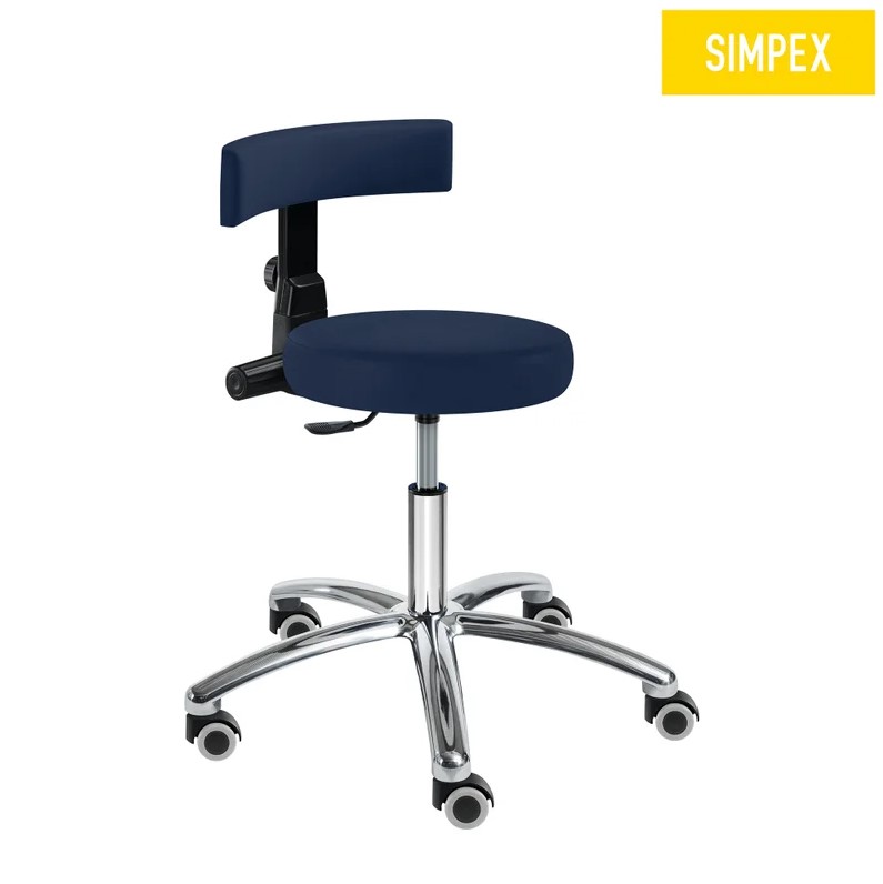 Drehrollhocker sella-med Manus Work, dunkelblau, mit Rückenlehne, Sitzgröße Ø 37cm