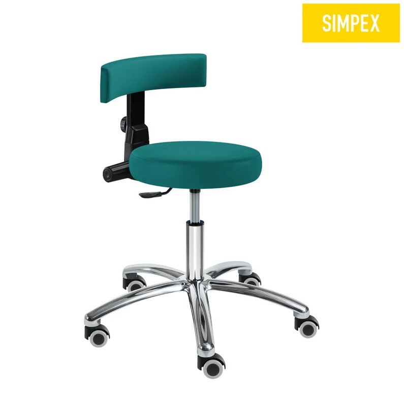 Drehrollhocker sella-med Manus Work, blaugrün, mit Rückenlehne, Sitzgröße Ø 37cm