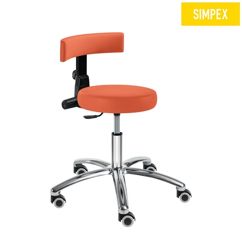 Drehrollhocker sella-med Manus Work, orange, mit Rückenlehne, Sitzgröße Ø 37cm