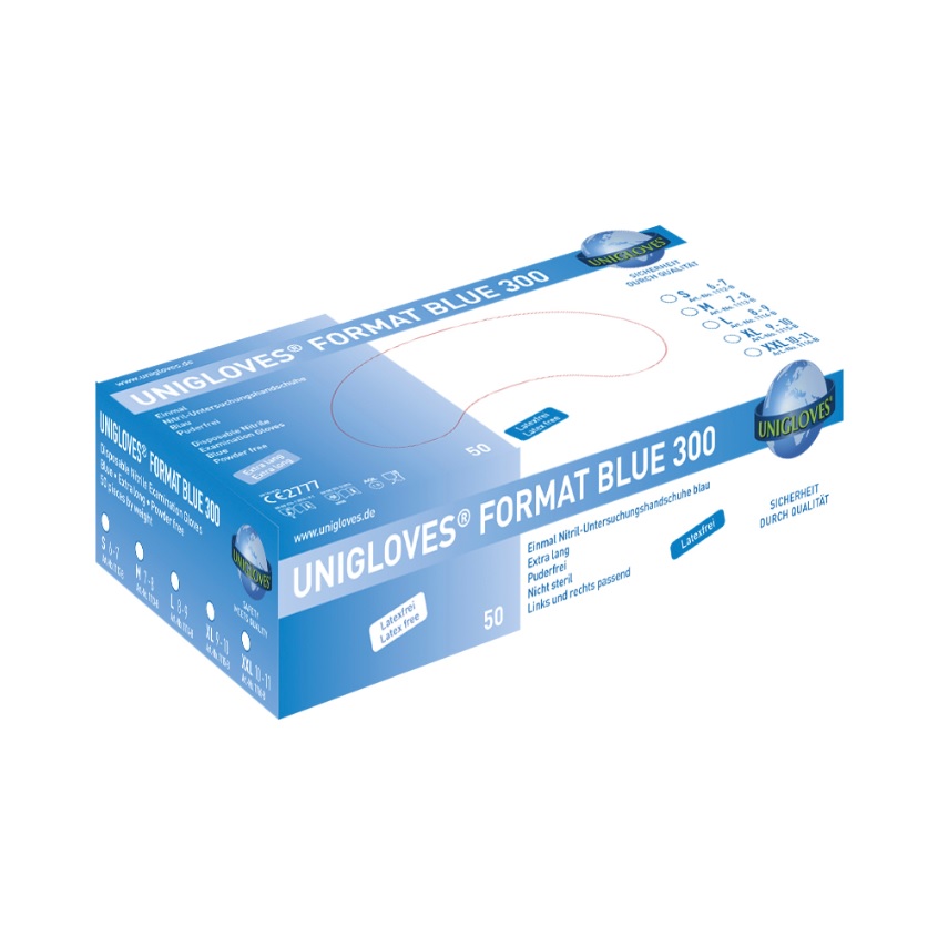 Format BLUE 300 Nitril, Gr. L High-Security-Handschuhe (11,8gr), 50 St. ungepudert, latexfrei, mit