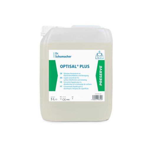 OPTISAL PLUS ist ein universell einsetzbares, flüssiges Konzentrat zur Desinfektion und Reinigung von Flächen in patientennahen Bereichen sowie von nichtinvasiven Medizinprodukten. OPTISAL PLUS zeichnet sich durch eine hohe Reinigungsleistung sowie ein speziell für die Routineanwendung abgestimmtes Wirkspektrum aus. Neben der Wirksamkeit gegen alle behüllten Viren (HBV, HIV, HCV) verfügt OPTISAL PLUS über eine hervorragende Wirksamkeit gegen unbehüllte Viren wie Adeno-, Noro- und Rotaviren. OPTISAL PLUS zeigt ebenfalls eine gute Wirksamkeit gegen Mykobakterien sowie Schimmelpilze. Die innovative Zusammensetzung gewährleistet eine streifenfreie Abtrocknung bei der Anwendung. OPTISAL PLUS ist geruchsneutral und parfümfrei.