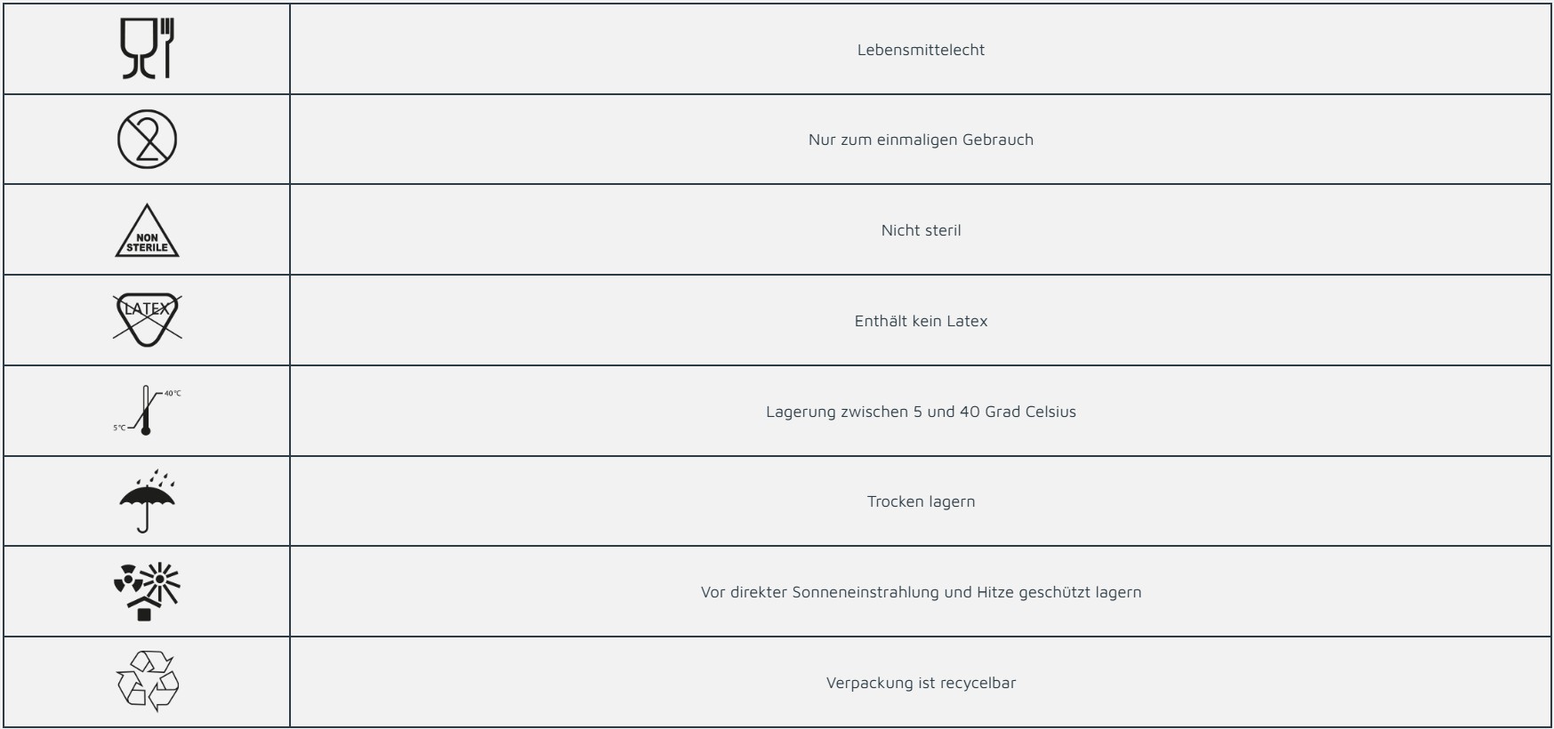 Konform mit: Verordnung (EU) 2016/425 über persönliche Schutzausrüstungen Lebensmittelecht.